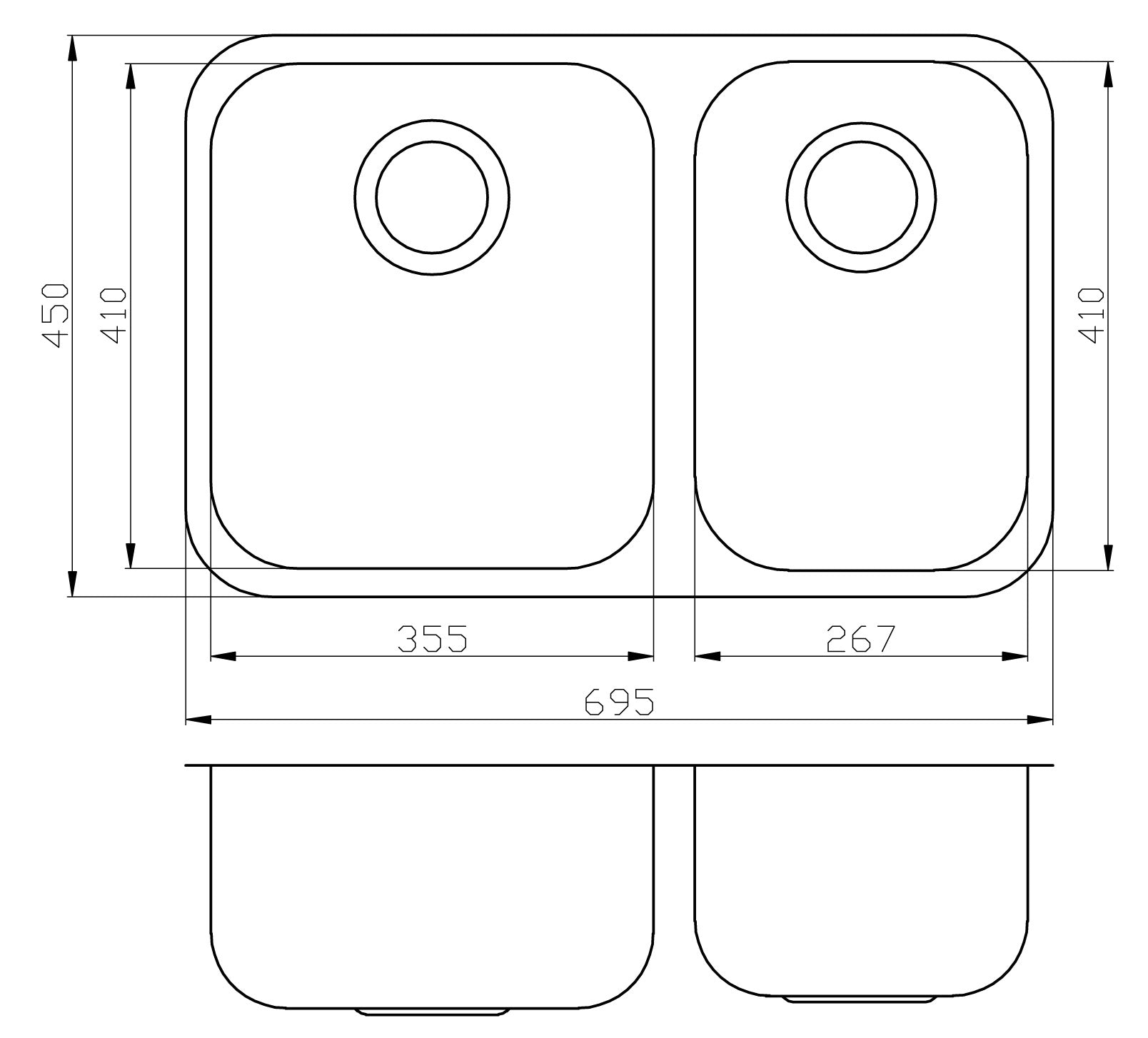 Coral 1 & 1/2 Bowl Undermount Sink 695mm